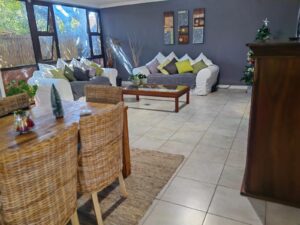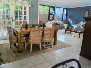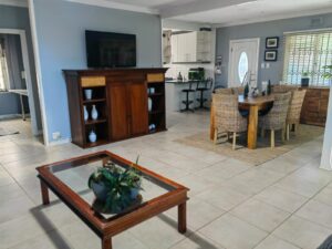 Open plan lounge, dining area and kitchen. Tiled flooring throughout.